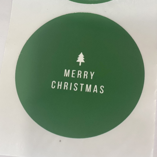 Green Round Merry Christmas Sticker 65mm
