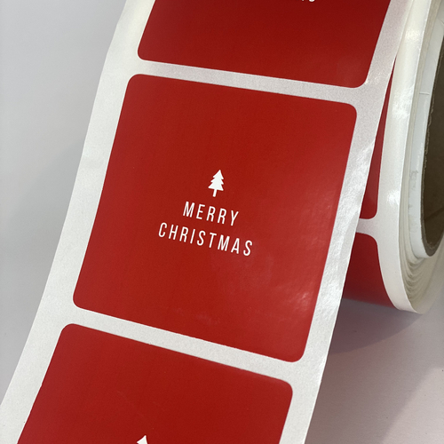 Red Square Merry Christmas Sticker 65mm
